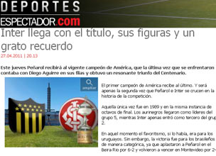 O site do jornal Espectador destaca a última vez que o Inter esteve no Centenário. A equipe, que contava com o ídolo e atual técnico do Peñarol, Diego Aguirre, venceu os donos da casa por 2 a 1, após ter aplicado 6 a 2 nos uruguaios no jogo de ida, pelo Beira-Rio.